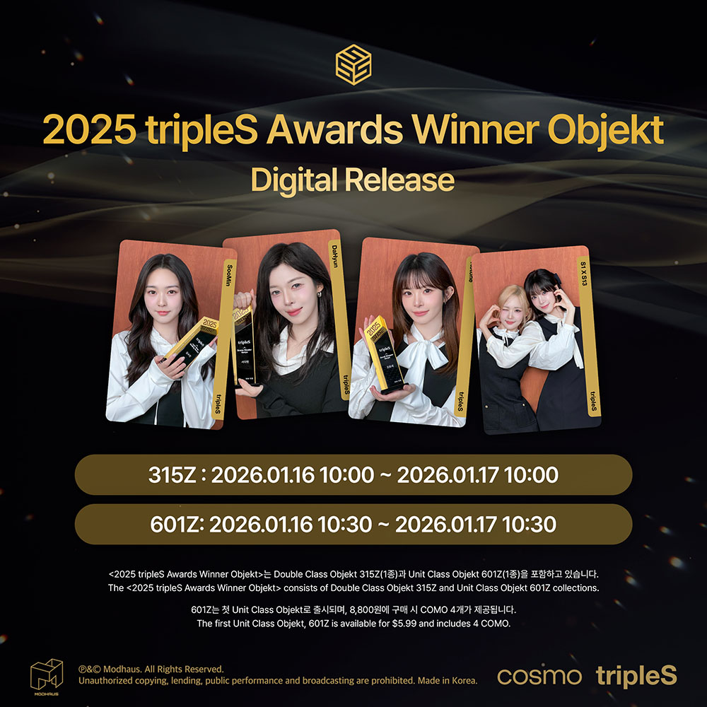 Sold on the COSMO app shop to celebrate tripleS Awards 2025. Features the first Unit class objekt for tripleS.